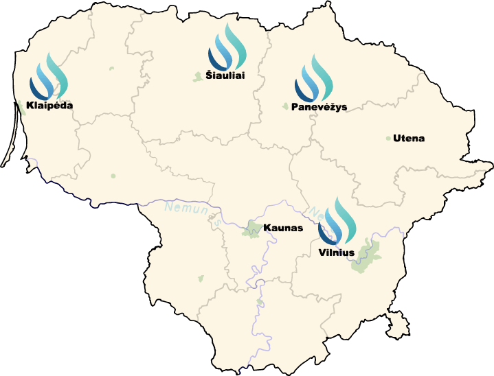Vandens Sprendimai teikia paslaugas visoje Lietuvoje. Klaipėdoje, Vilniuje, Panevėžyje ir Šiauliuose yra mūsų pagrindinės būstinės, kuriose nuolat verda gyvenimas. Kvalifikuoti vandens technologai ir aptarnaujantys serviso darbuotojai visuomet pasiruošę atlikti įrangos diagnostiką, sistemų programavimą, aptarnavimą ir paleidimą. Atsižvelgdami į pirminius vandens tyrimo rezultatus, esant poreikiui, paimti išsamiam tyrimui reikalingus mėginius. Pagrindinės mūsų veiklos sritys:
